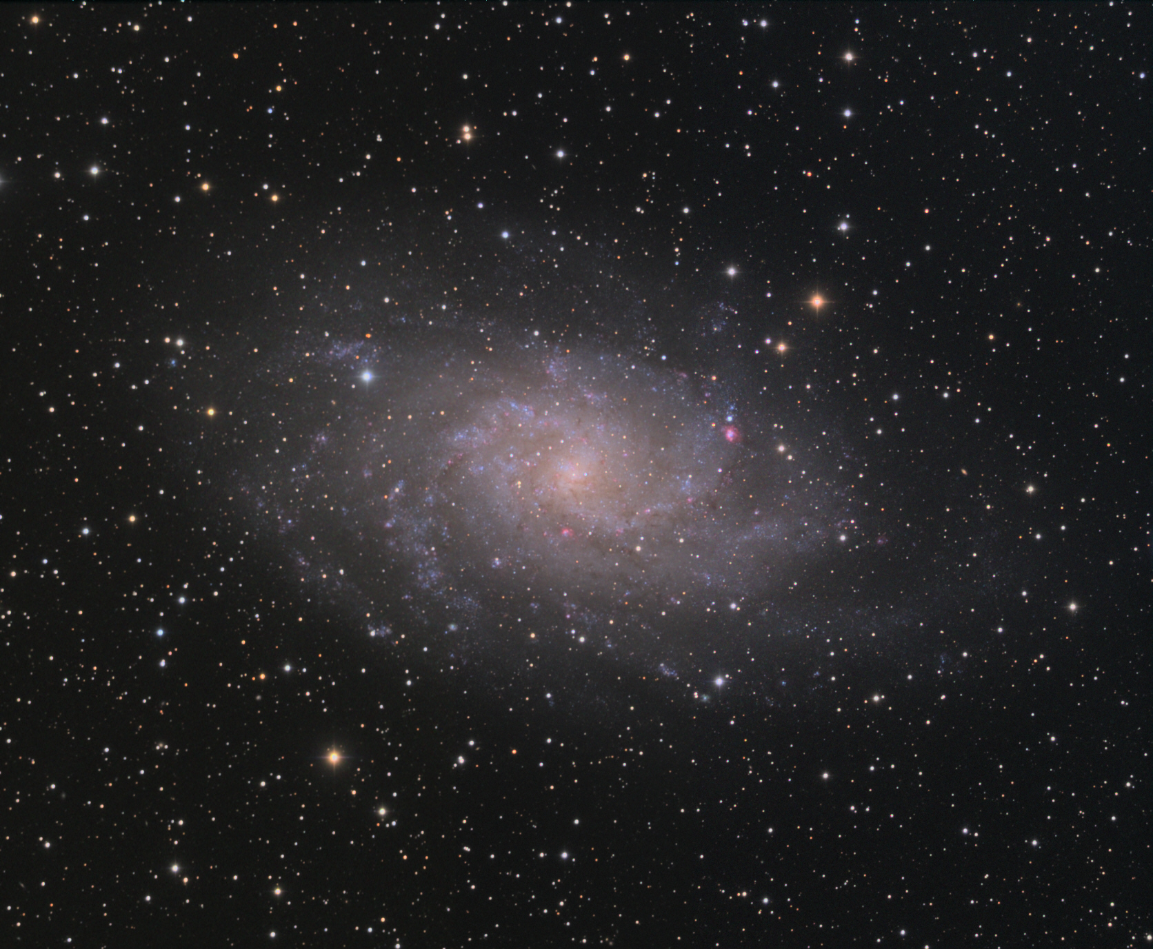 La galaxie du Triangle M33, située à 2,7 millions d'années-lumière, est une des galaxies spirales les plus proches de la nôtre. Photo prise à la lunette en