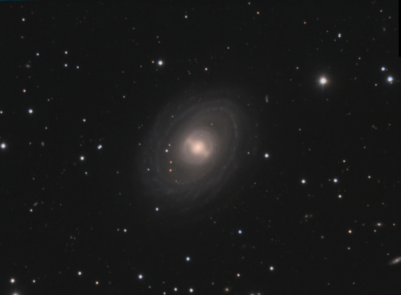 M91 est une galaxie spirale barrée située à environ 52 millions d'années lumière. Les détails comme les couleurs sont assez discrets.