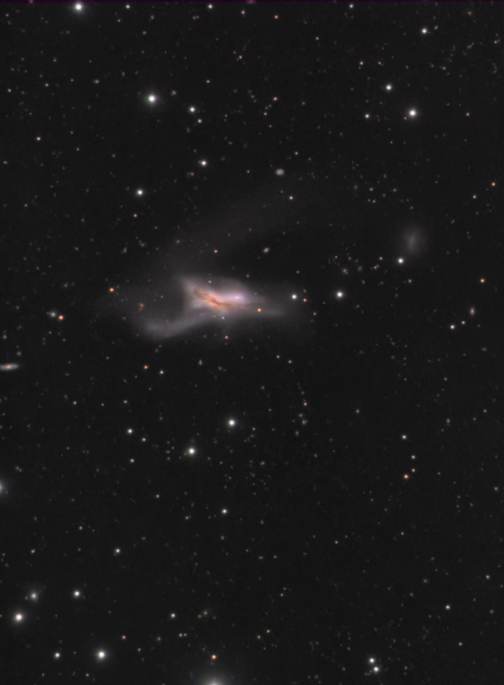 ma cible principale la plus lointaine depuis que je fais de l'astrophoto (hors Quintet de Stephan). Elle figure au catalogue des galaxies particulières sous
